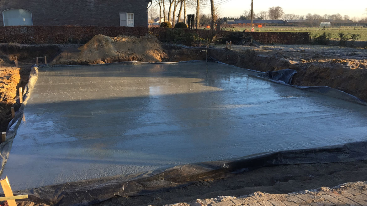 Ten slotte wordt de betonplaat gestort en proper afgewerkt. Hierna kan er gestart worden met de verdere opbouw.